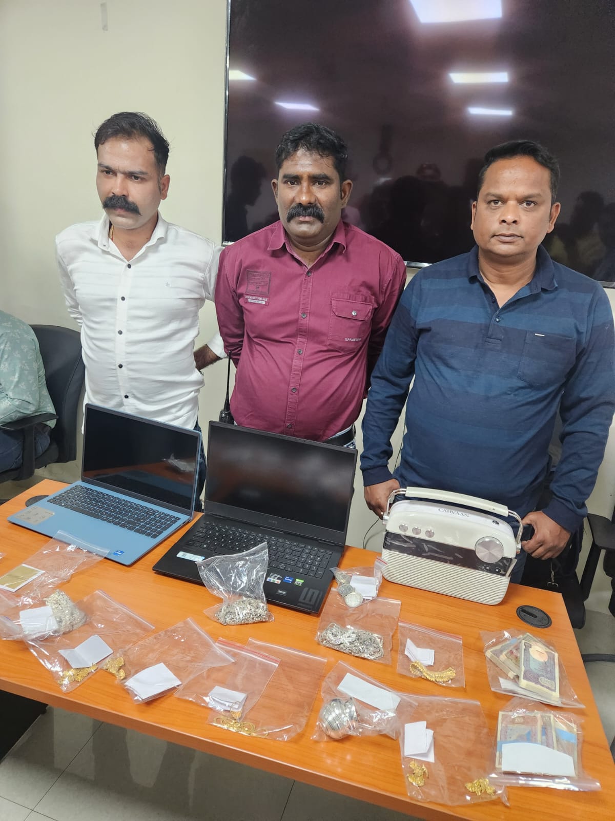 - थाना गाँधी नगर भोपाल के अपराध क्रमांक 40/24,41/24,42/24 धारा 454,380 भादवि मे के चोरी गई संपत्ति कीमती लगभग साढे चार लाख, एक एचपी कंपनी का लेपटाप, एक केसियो एडीफीस की घड़ी, नगदी 4500 रुपये (कुल मशरूका 5 लाख 45 हजार)